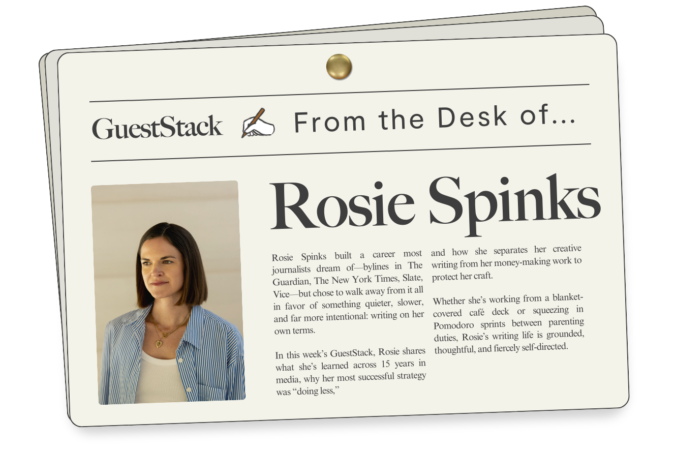 Rosie Spinks has built a career most journalists dream of—bylines in The Guardian, The New York Times, Slate, Vice—but chose to walk away from it all in favor of something quieter, slower, and far more intentional: writing on her own terms. Her bestselling Substack — What We Do Now That We’re Here