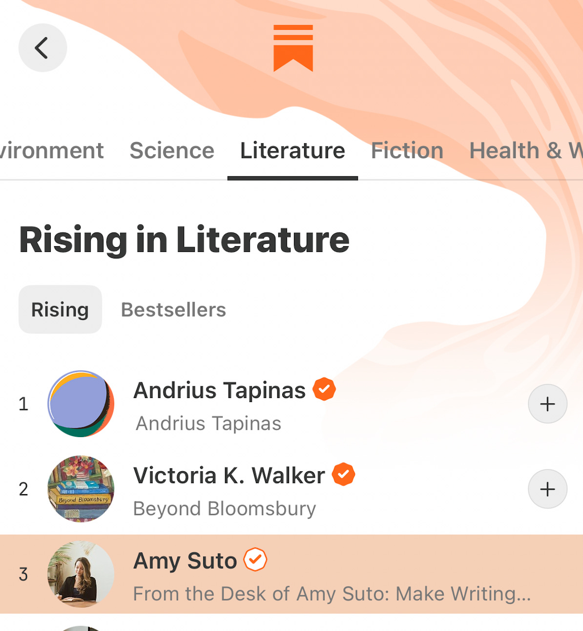 First, some exciting news — this Substack publication From the Desk of Amy Suto: Make Writing Your Job is now #3 on the rising literature charts!!!