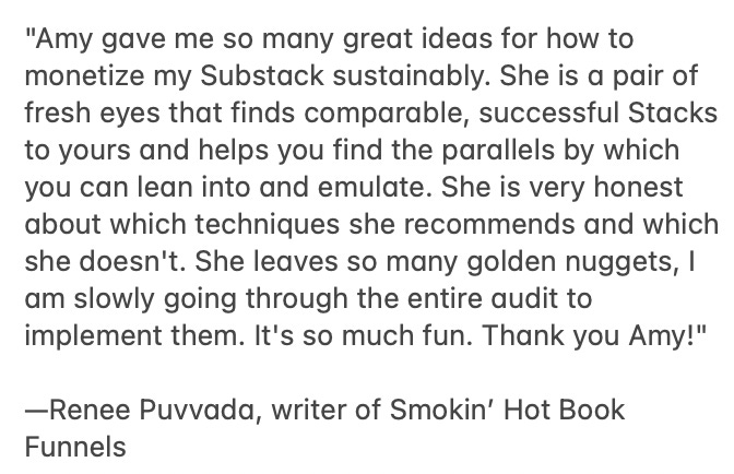 Substack Audits. These audits are a great jumping-off point if you’re looking for actionable tips to grow your Substack.