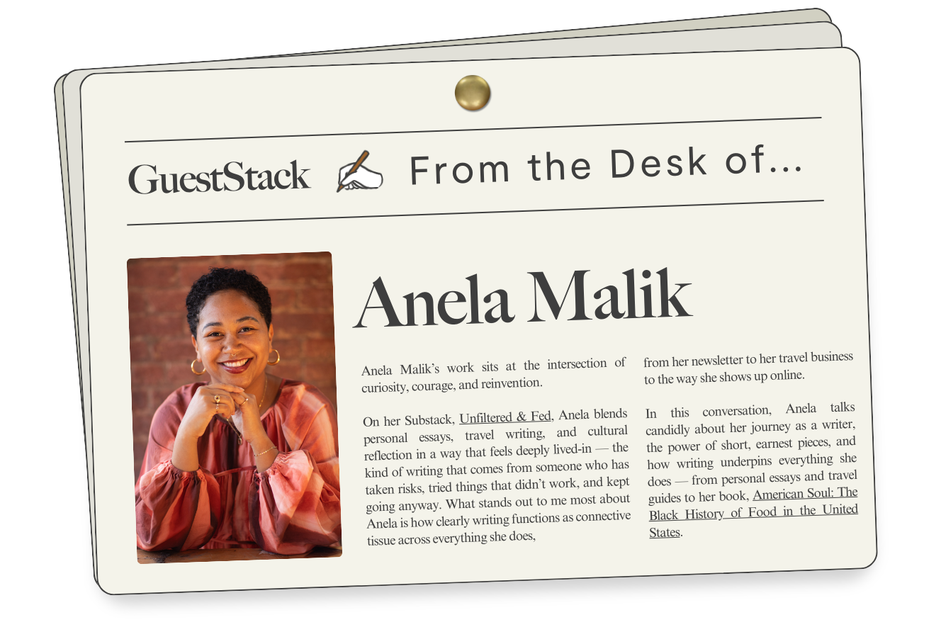 In this conversation, Anela talks candidly about her journey as a writer, the power of short, earnest pieces, and how writing underpins everything she does — from personal essays and travel guides to her book, American Soul: The Black History of Food in the United States.