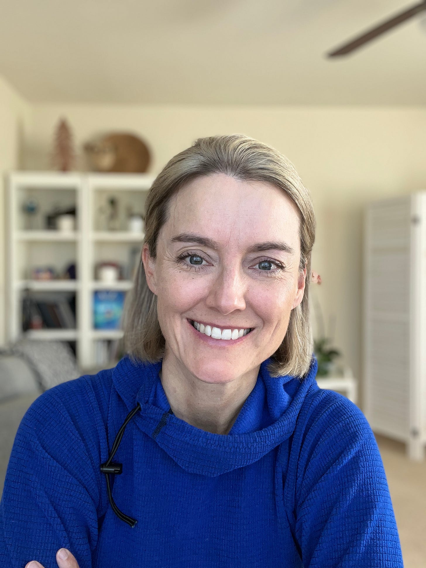 My desk is wherever my body and brain can work together. Sometimes I’m on the floor with my laptop, sometimes at a standing desk, and sometimes in our RV as we travel around the country. I write on my MacBook, always near sunlight. That part is non-negotiable. I don’t drink coffee, but I almost always have Earl Grey tea nearby. I need light, space, and a little freedom of movement to think clearly. The setup is simple, flexible, and intentionally a bit unconventional, much like the way I approach health and habits.