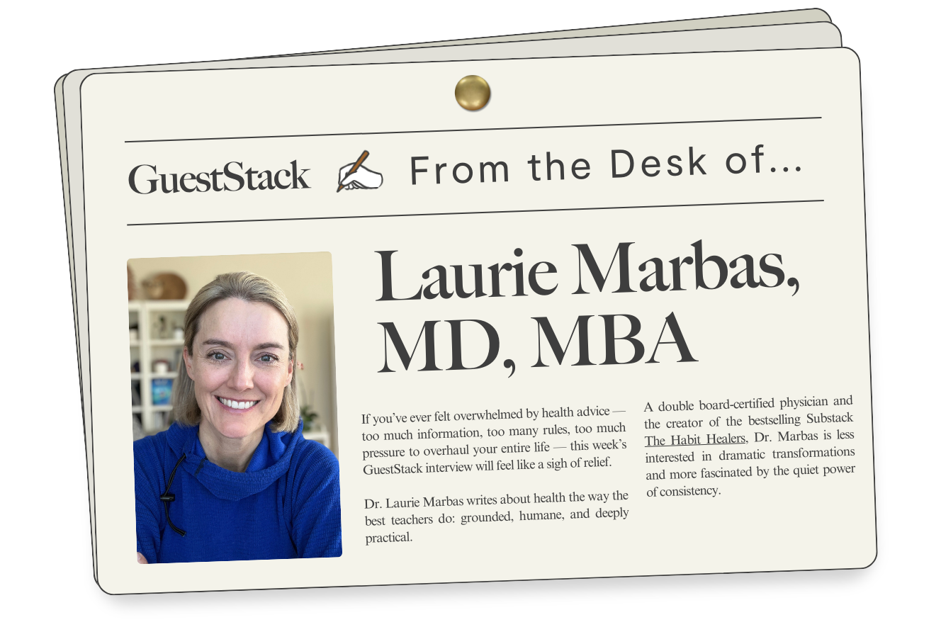 Dr. Laurie Marbas writes about health the way the best teachers do: grounded, humane, and deeply practical. A double board-certified physician and the creator of the bestselling Substack The Habit Healers, Dr. Marbas is less interested in dramatic transformations and more fascinated by the quiet power of consistency. Her work centers on a deceptively simple idea: healing doesn’t come from intensity or perfection, but from small, repeatable habits that compound over time.