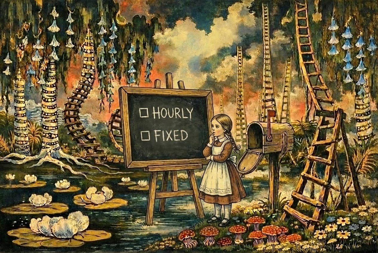 But hourly has a ceiling — because you do. There are only so many hours in a week, and you can only raise your rate so far before clients start doing the math and flinching. The psychology of value breaks down when you’re billing by the hour.