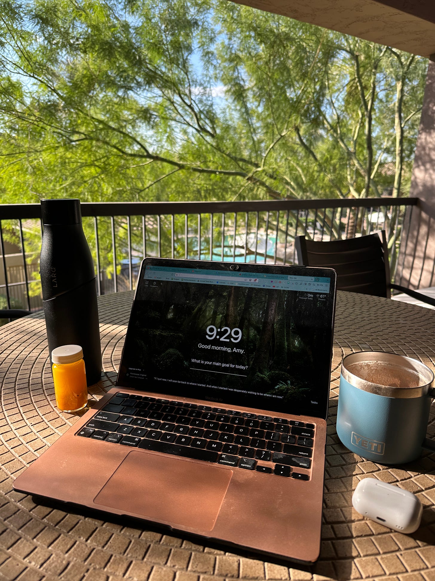 This is my writing view as I slam ginger + turmeric juice shots and get over this nasty cold I’ve had for the last week.